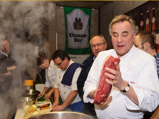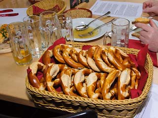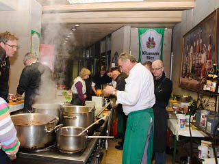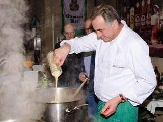 Als „Unterlage“ waren zwei Körbe mit Gulden-Brezen sehr geeignet, die Bäckermeister Georg Gulden höchstpersönlich vorbeibrachte. Der Party Service Günther Knaus aus der Luitpoldstraße sorgte für einen heißen Kartoffeleintopf. Außerdem versorgte die Familie Müller, die alljährlich mit einem Bratwurststand und Müllers Bergstation am Weller-Keller am Berg vertreten ist, die Hungrigen mit fränkischen Bratwürsten.