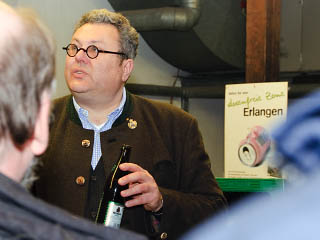 Dazu zählte von der Junkersdorfer Kommunbrauerei ein Kellerbier, das Kurt Adler und Axel Fella mitgebracht hatten. Von Gerhard Baier ein „Bayernturm Kerwabier“, ein Rauchweizenbock von Josef Koblischek aus Buckenhof. Bernd Schirmer vom gleichnamigen Schirmer-Bräu hatte ein Märzen im Angebot, das als einziges im Erich Keller auf dem Bergkirchweihgelände reift und lagert.