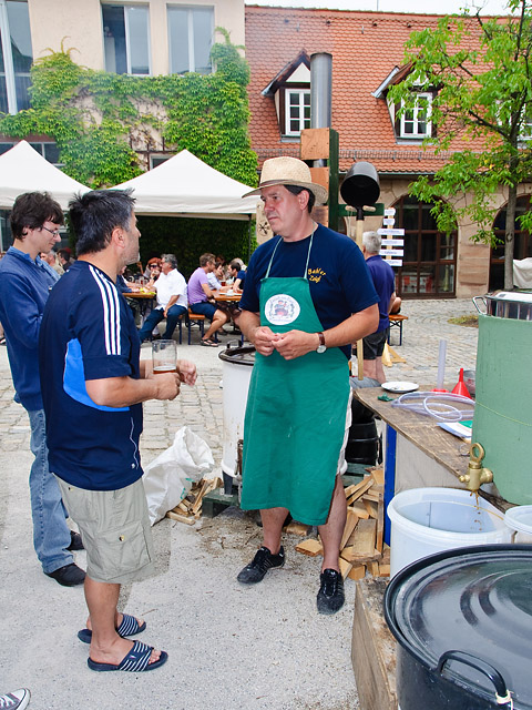• Der Hof des Stadtmuseums wurde zur neuen Heimat der Haus- und Hobbybrauer (Verein zur Förderung der fränkischen Braukultur). VHD-Schatzmeister Roland Singer kochte einen Sud dunkles, stark gehopftes Kellerbier (die „Fränkische Nacht“ nach einem Originalrezept von Franz König).