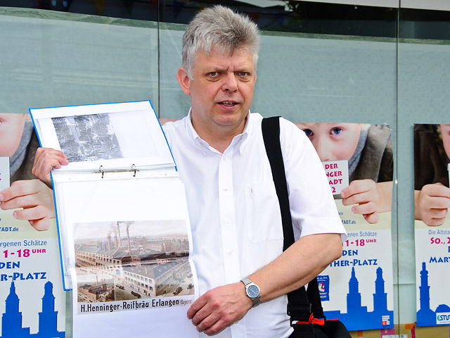 • Das Stadtmuseum gegenüber hatte u.a. einen Vortrag über Erlanger Brauereien und Besichtigungsmöglichkeiten der ehemaligen Brauereikeller unter dem Altstädter Kirchenplatz im Programm (Erich und Ott). Der Besucheransturm war überwältigend!