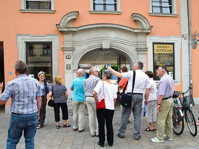 • Im ehemaligen Brauereianwesen Martin-Luther-Platz 5 (Brauerei Tauber) wurden die Gäste von Margot und Peter Maret-Huskinson ganz herzlich begrüßt. Hof und Gewölbekeller bargen manche schöne Überraschung.