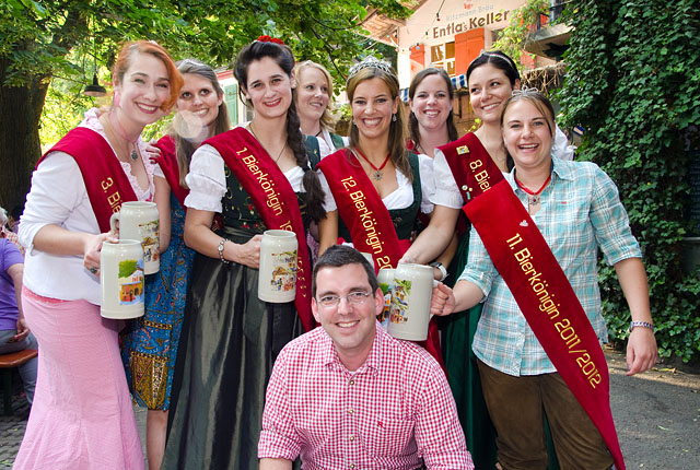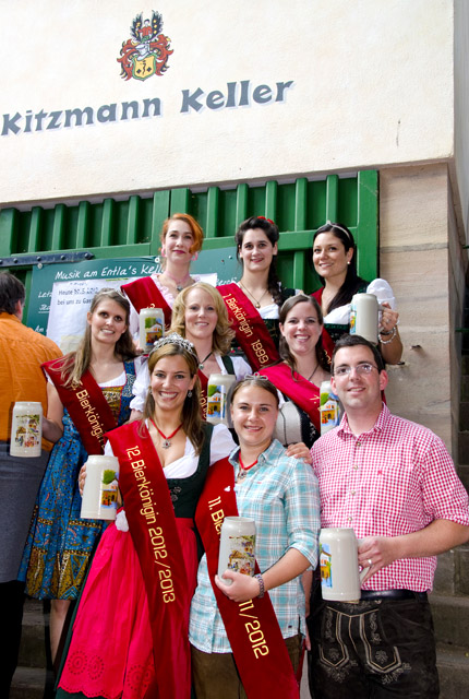 Beim Erlanger Bierfrühling vor wenigen Tagen ist für Mirjam Eckert ein Traum in Erfüllung gegangen: Im Jubiläumsjahr der Brauerei Kitzmann wurde sie zur 12. Kitzmann Bierkönigin gewählt. Als Mirjam I. wird die Studentin ab sofort das Unternehmen für ein Jahr auf zahlreichen Veranstaltungen repräsentieren. Eine der ersten Amtshandlungen der frisch gekürten Majestät: Der traditionelle Bierköniginnen-Stammtisch auf der Erlanger Bergkirchweih, zu dem Mirjam I. ihre Vorgängerinnen zum königlichen Plausch einlud.