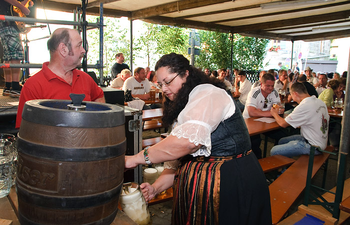 Wie es nun schon seit 1997 gute Tradition ist, präsentierte die Steinbach Bräu ihren Bergkirchweihbier-Jahrgang am Tag des deutschen Bieres den Fans mit 100 Litern Freibier. So war es kein Wunder, dass am Dienstag, 23. April 2013, um 18.00 Uhr der Brauereihof an der Vierzigmannstraße wieder gut gefüllt war, als Brauherr Christoph Gewalt sein Kerwasbier umschrieb: dunkel, naturbelassen, vollmundig und süffig, bei 13,8 % Stammwürze, aus denen 6 % vol. Alc. entspringen.