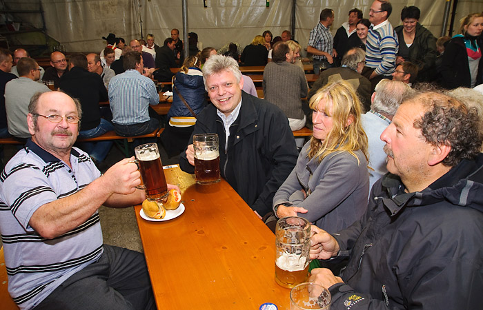 2013 hatte der Erlanger Filmemacher und Redakteur des Bayerischen Fernsehens, Studio Franken in Nürnberg, Rüdiger Baumann die Ehre, das erste Fass Bergkirchweihbier anzustechen, was ihm dank des speziellen Hahns auch bravourös gelang. Gonzos Dixie-Combo heizte in gewohnter Weise mit schnellen Rhythmen und den altbekannten Gags ein; dazu schmeckten Brunner-Bratwürste und das köstliche Biergulasch des Hauses nach einem Originalrezept von Sophie Steinbach. Alle Besucher waren glücklich und zufrieden an diesem lauen Frühlingsabend. Einer war es aber ganz besonders: Christof Jäger hatte auf 15 Minuten genau geraten, wann heuer der erste Steinbach-Storch auf dem Horst über der Brauerei auftaucht. Jetzt konnte er dafür ein 30-Liter-Fass des Altstädter Elixiers in Empfang nehmen.