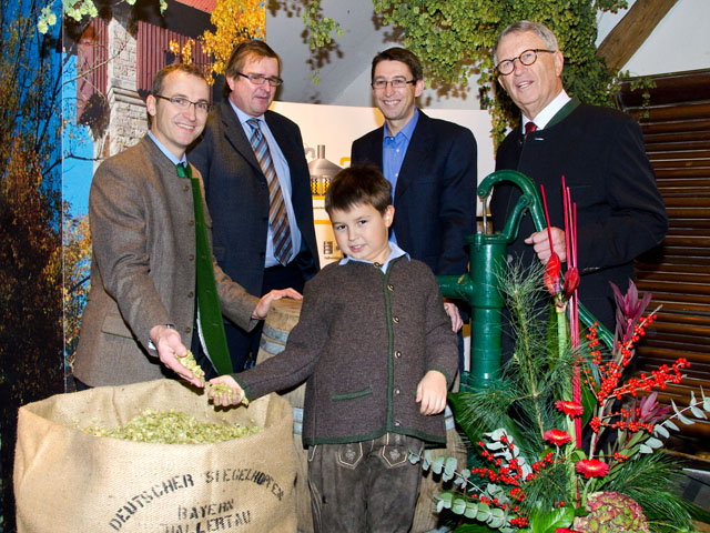 Nachdem sich es Dieter Gewalt nicht nehmen ließ, seinen Geburtstag mehrteilig vom 17. bis zum 19. August 2012 zu feiern, lag es natürlich auf der Hand, dass das Brauteam um seinen Sohn Christoph Gewalt und Braumeister Roman Gause ein ganz spezielles Geburtstagsbier brauen würden: „Dieters Spezial – das Lieblingsbier des Seniors, mit Saphir-, Opal- und Smaragdhopfen gebraut“! Das Steinbachbier des Monats August zeichnet sich durch seine goldgelbe Farbe, einen feinen Schaum, einen zitrusfruchtigen Wohlgeruch und einen süffigen hopfenaromatischen runden Geschmack aus. Helles Gerstenmalz und etwas Dinkelmalz, die drei genannten Edelhopfensorten, Zweimaischverfahren und Endvergärung erbrachten bei gespindelten 13,8 % Stammwürze einen Alkoholgehalt von etwa 5,5 % vol. Das geniale Dieters Spezial war die klassische fränkische Hopfenerntezeit im Ausschank, was am 3. September 2012 nur noch dadurch getoppt wurde, dass ganz frisch geerntete Hopfenranken mit ihren üppigen Dolden (die Aromasorte Spalter direkt aus Spalt) im ganzen Brauhaus dekoriert wurden. Auch auf jeden Tisch kam eine Handvoll von diesen frischen Hopfendolden, sodass jeder Gast den markanten Geruch des aus den Fruchtzapfendrüsen des Hopfens stammenden Lupulins für sich testen konnte. Idealerweise mit einem frisch gezapften Glas Dieters Spezial vor sich, um köstliche Hopfenaromen gleich in ihrer Bestimmungsform genießen zu können – hoffentlich nicht ohne dem Namensgeber vorher die besten Wünsche zugedacht zu haben…!