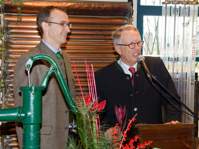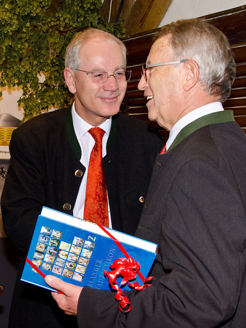 Dieter Gewalt (links) in promineter Gesellschaft an der Steinbach-Bergbierprobe 2010.