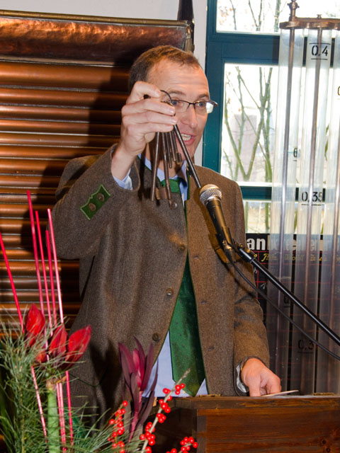 Zu Beginn der Fastenzeit am Montag, 18. Februar 2013, hatte die Steinbach Bräu zur Präsentation ihrer neuen untergärigen Starkbierkreation ins Sudhaus geladen. Da wusste noch keiner der Gäste, dass das zum Anstich bereitstehende Holzfass in Kühlkeller vertauscht worden war und ihnen nach Ansprache durch den Hausherrn und drei gekonnten Anzapfschlägen zunächst ein Storchen-Vollbier gereicht wurde. Nach der ersten Verkostung … „dass man einen Bock so unalkoholisch herbringt!?!“ wurden die etwas zweiflerischen, aber dennoch sehr gutgläubigen Mienen über das Malheur, das eher ein zum Lachen reizender Gag war, aufgeklärt.